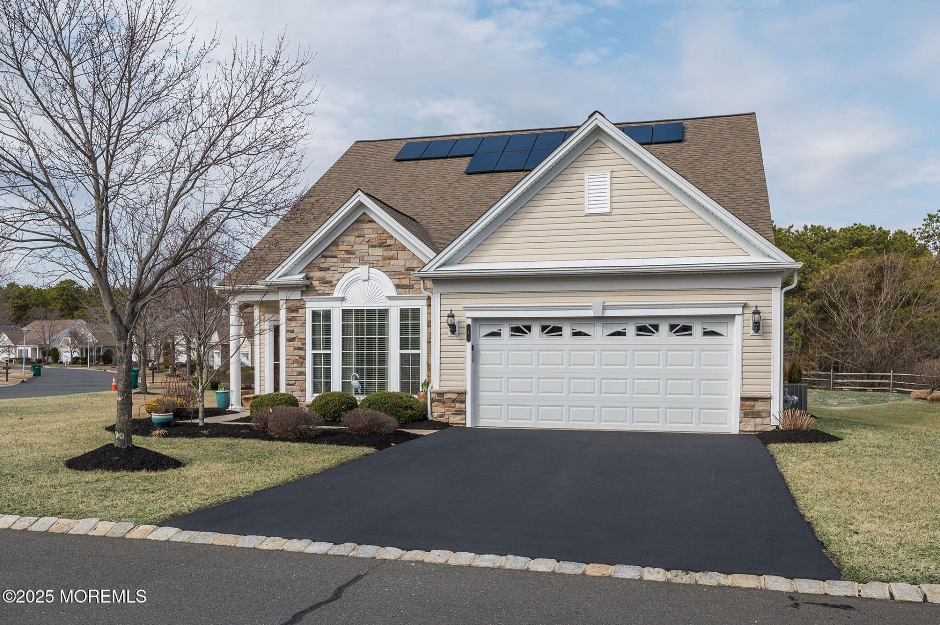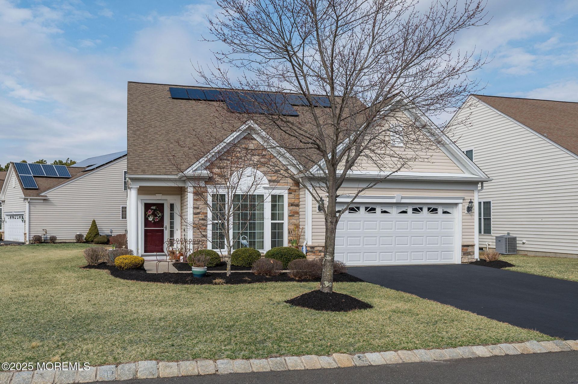 Welcome to this beautiful Newhall with 3 bedrooms/3 baths, office and Loft. It has a formal entryway into the dining room featuring luxury vinyl plank flooring, columns, wainscoting and crown molding. The kitchen has 42'' cabinets, center island and breakfast bar adjacent to family room w/gas fireplace. Additionally, the kitchen offers double oven, countertop range, beautiful quartz and pantry. The primary suite has a tray ceiling, walk-in closet and bathroom w/double sinks, soaking tub, shower stall, under counter heater, and linen closet. The 2nd bedroom and adjoining bath are also on the first level. In the loft you'll find a living room, 3rd bedroom, 3rd bath and utility room. Upgrades include new HVAC 2025, fenced paver patio, leaf filters in front, and OWNED Solar Panels!