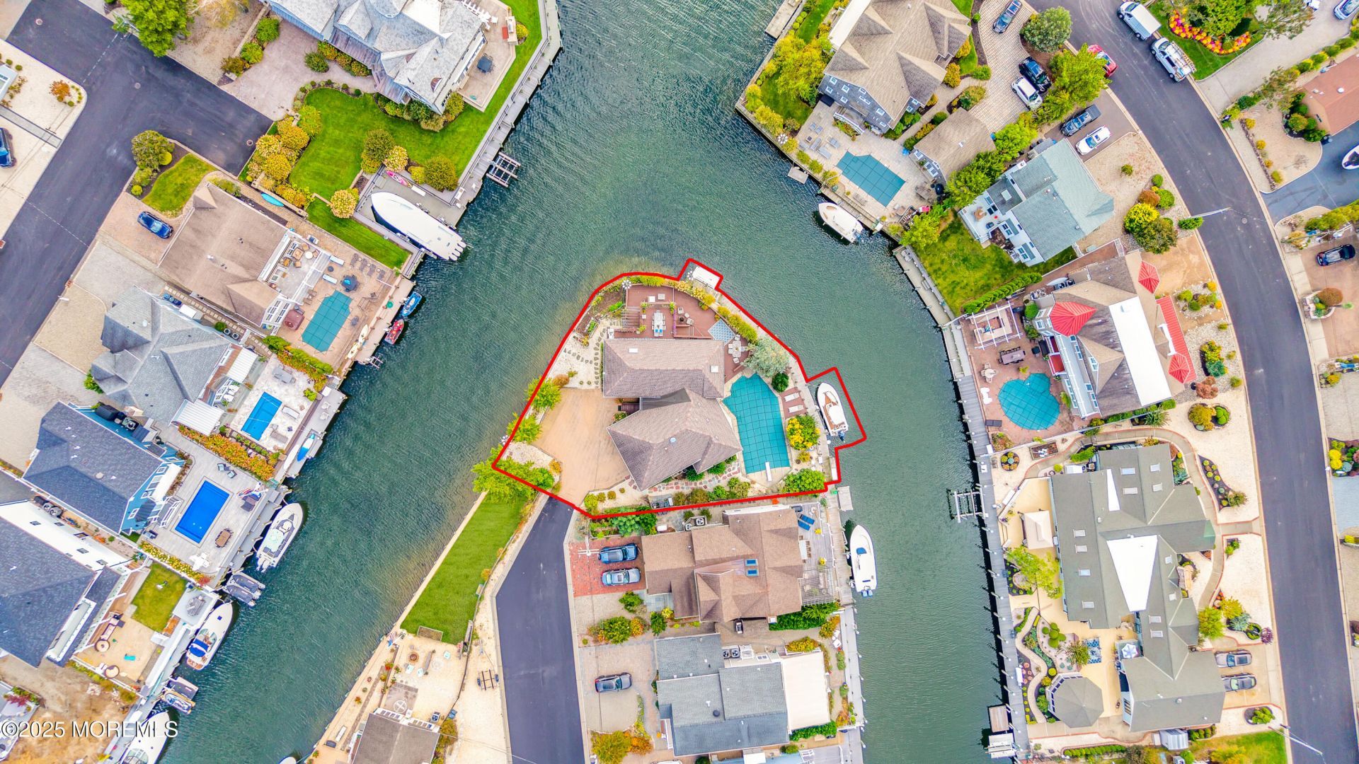 This special point of land is a place where every day feels like a getaway. Tucked just inside the head of the lagoon, the property offers calm, protected waters while opening up to sweeping views of Barnegat Bay. From sunrise to sunset, the beauty of the bay is always in sight. Relish in the quiet evening dinners on your private deck buffered from other homes by an expansive lagoon, unique to this location only. With 240 feet of dockage -- including deep-water space for larger boats -- there's plenty of room for all your water toys and easy access for cruising, fishing, or sunset rides. The 3,400 sq ft home spans three levels, thoughtfully designed to take in the views from nearly every room. On the top floor, the open kitchen and great room are surrounded by windows, so whether you're cooking dinner or relaxing with family, the water is always part of the backdrop. Step outside and enjoy multiple decks for morning coffee, a dip in the saltwater pool, or evenings spent watching boats drift by. Located on a quiet dead-end street, this peaceful setting captures the essence of life on the bay-relaxed, scenic, and full of coastal charm.