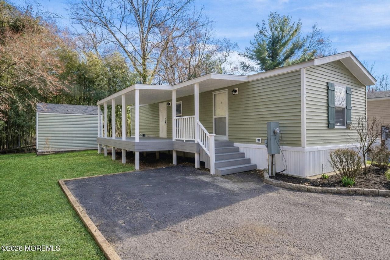 PRIME LOCATION & EVERYTHING IS NEW! Nestled in Wall Township just minutes from the Jersey Shore's most popular beaches, this beautifully updated 2-bedroom, 1-bath manufactured home is tucked away on a quiet, private cul-de-sac that backs up to the woods.Featuring top-tier craftsmanship from top to bottom, the home offers a spacious open-concept layout with new flooring, walls, lighting fixtures, and fresh paint throughout. The updated kitchen showcases granite countertops, beautiful new cabinetry, stainless steel appliances, and abundant natural light from all-new windows. Additional upgrades include a new hot water heater, furnace, and central A/C. EVERYTING NEW!Step outside to enjoy a modern exterior and a brand-new screened-in Trex deck overlooking the spacious, private backyard, perfect for relaxing after a day at the beach. The property also features a two-car driveway, a new roof, and a powered storage shed, ideal for a workshop or additional storage. Conveniently located less than five minutes from the Garden State Parkway, this home is perfect for commuters with easy access to major highways, bus stops, and nearby train stations.The monthly association fee INCLUDES TAXES, trash removal, snow removal, and common area maintenance. Pet-friendly community!Don't wait, schedule your showing today!