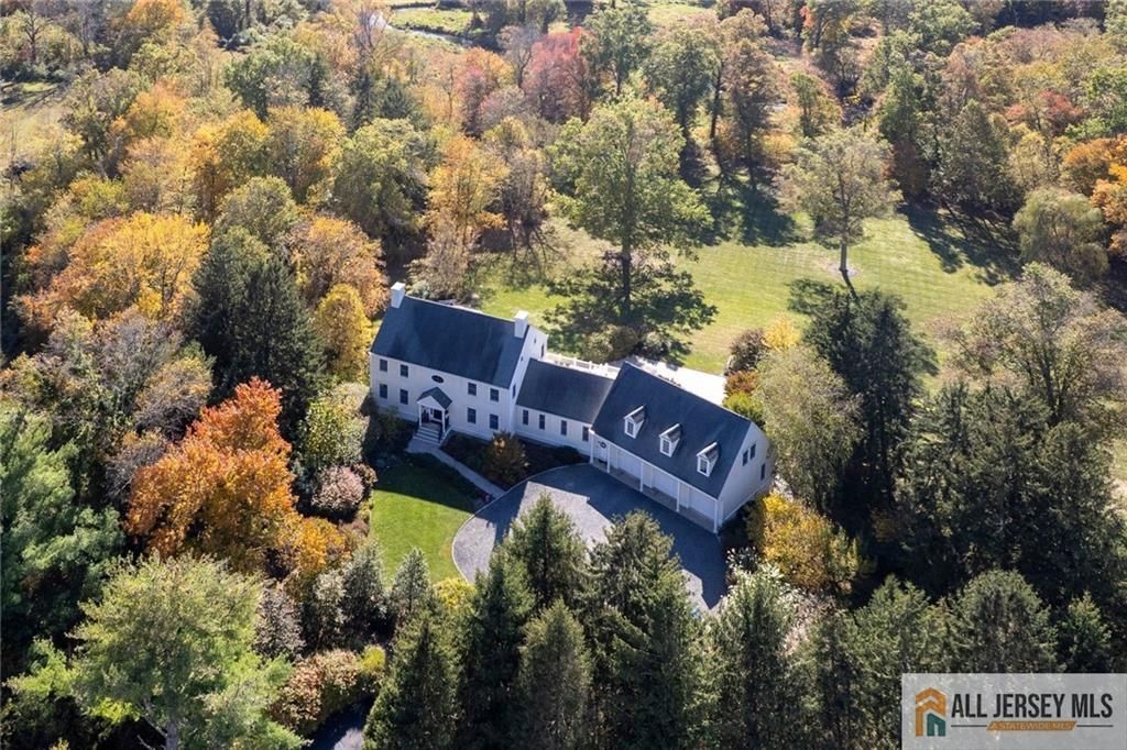 Set on nearly five beautifully landscaped acres just minutes from the Princeton Junction train station, this exceptional residence offers the rare combination of complete privacy and seamless convenience. Moments from Princeton University, McCarter Theatre, and the refined dining and boutiques of downtown Princeton, the setting feels wonderfully removed. Its an estate-like retreat in the heart of it all. Thoughtfully reimagined with uncompromising attention to detail, the home unfolds with expansive yet inviting spaces designed for both grand entertaining and relaxed daily living. The open-concept kitchen and family room, redesigned in 2015, flow seamlessly to an extraordinary Trex deck. Beneath a covered pavilion with remote-controlled screens, a fully appointed outdoor kitchen showcases granite counters, a two-burner hob, a grill, beverage refrigerator, and generous seating, creating an alfresco experience worthy of a private resort. The finished walk-out lower level rivals a private club, featuring a 3D home theater, spa bath with sauna, and a French Burgundy-inspired wine cellar with dual refrigerators and kegerator. Glass doors open to lower terraces, a hot tub, and sweeping grounds that create a true sense of escape. Versatile living spaces include a gracious great room, a private office, a mudroom, and a laundry room. Above the three-car garage, a separate-entry bonus suite with a full bath, currently serving as a music studio and gym, offers ideal accommodations for guests or a discreet home office. Every bath has been curated with spa-level finishes, including the indulgent primary suite. A back up generator and high-efficiency systems ensure year-round comfort and peace of mind. Solar lighting, raised garden beds, and a path leading to the Millstone River complete this extraordinary lifestyle offering.