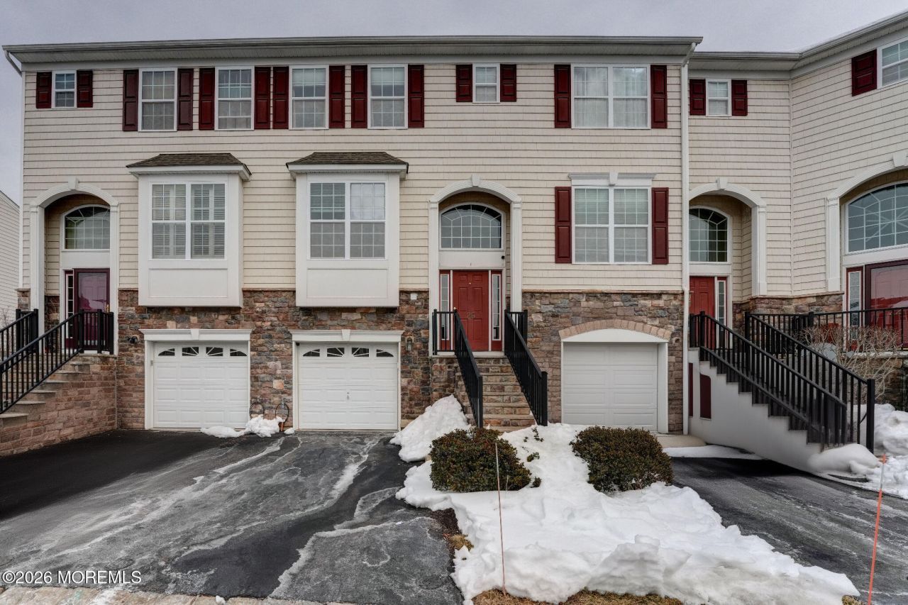 An exceptional opportunity to own one of Madison Crossing's most desirable residences, uniquely positioned to capture rare privacy and tranquil preserved views. This beautifully appointed 2-bedroom, 2 full and 2 half-bath townhome with a 1-car garage blends refined design with effortless, low-maintenance living in a sought-after 55+ community. Gleaming hardwood floors enhance the open-concept main level, where a spacious eat-in kitchen with walk-in pantry flows seamlessly into the dining and living areas, anchored by a warm gas fireplace. Sliding glass doors open to a private deck overlooking protected preserved land ? a premium setting offering peaceful natural scenery. The upper level reveals a tranquil primary suite offering generous walk-in closets and a refined ensuite bath with dual vanities, a sleek glass-enclosed shower, and a privately positioned commode. A well-appointed guest suite and upper-level laundry complete the floor with effortless functionality. The finished lower level, complete with a half bath, offers versatile space ideal for a media lounge, private office, or additional gathering area, extending to a tranquil patio retreat. Thoughtful features include two-zone HVAC, abundant storage, and access to clubhouse amenities, swimming, landscaping, and snow removal, all moments from Route 9 shopping, dining, and transportation.