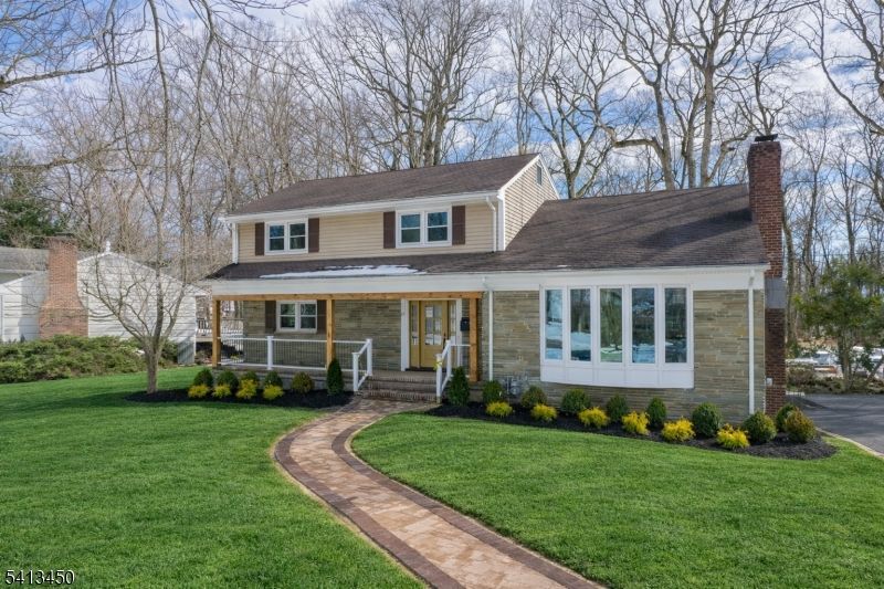 Welcome to this stunning fully renovated 4-bedroom, 3-full-bath home offering the perfect blend of modern style and everyday comfort. The bright open-concept main level features a gourmet kitchen with a dramatic 10-foot island, wine fridge, stainless steel appliances, and beautiful sightlines into the dining area and inviting living room with a cozy fireplace ideal for entertaining or relaxing nights at home. The first floor also includes a guest bedroom and full bath, spacious family room overlooking the backyard and deck, welcoming foyer, and convenient laundry room. Upstairs you'll find two generously sized bedrooms, a stylish hall bath, and a serene primary suite with a private en-suite. The basement offers a large recreation area with access through the family room and garage, providing endless potential for a gym, playroom, or media space.Enjoy outdoor living in the expansive backyard backing to peaceful woods. Ideally located near Governor Livingston High School, this move-in-ready home delivers space, style, and location all in one exceptional opportunity. Landscape is still in progress due to snow!