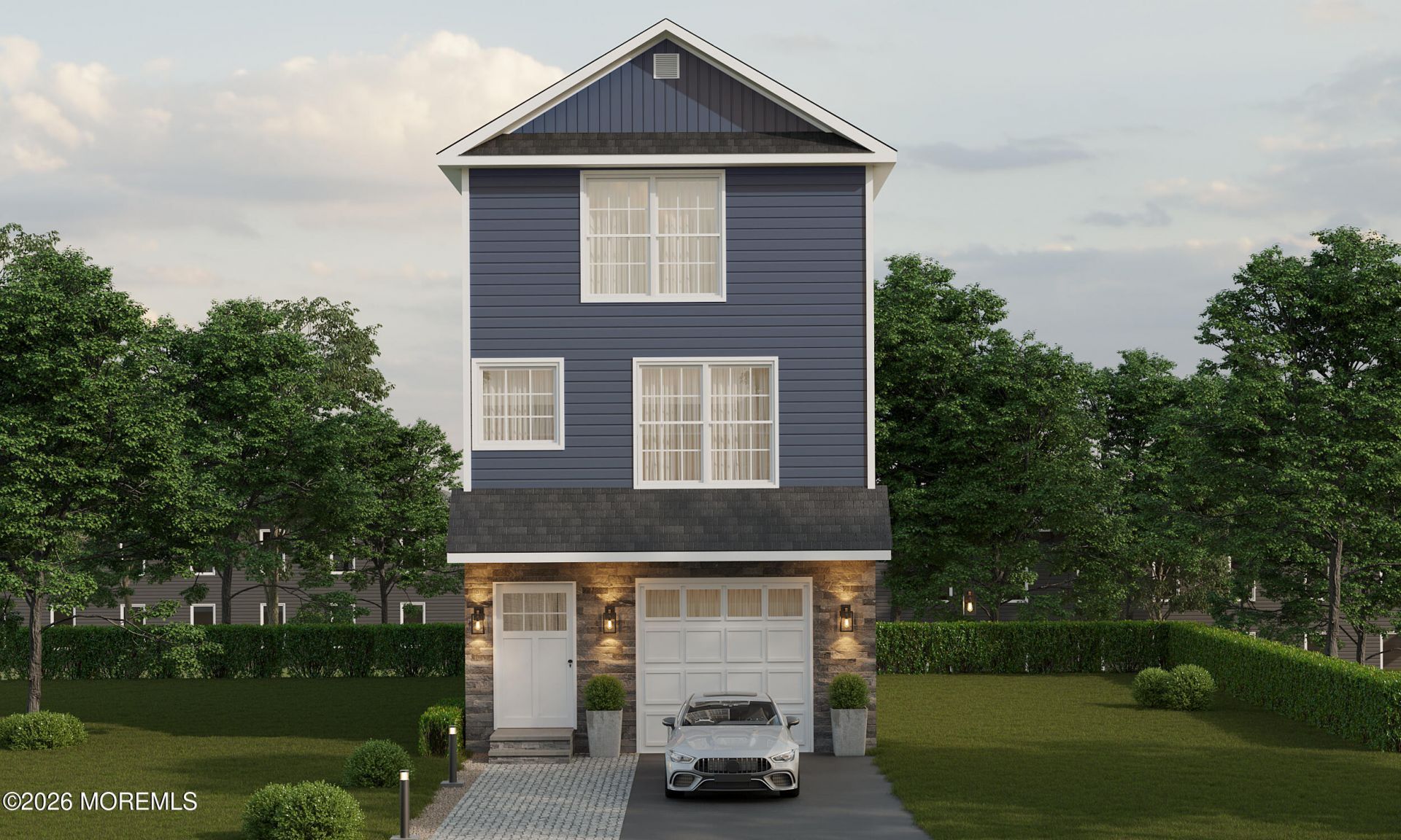 New construction coastal home offering a strong opportunity for both investors and primary homeowners in Keansburg. This spacious 3-bedroom, 2.5-bath multi-level home is located just minutes from the beach and provides convenient ferry access to New York City, making it ideal for commuters, weekend getaways, or full-time coastal living. Designed with modern living in mind, the home features an open-concept main living level with a bright living area, spacious kitchen with center island, dining area, and a powder room with laundry for added convenience. The ground level includes a large garage with storage and interior access, providing space for vehicles, beach equipment, bikes, and owner storage. The upper level includes a primary bedroom with private en-suite bath, two add'l bedrooms and a full hallway bathroom, offering comfortable accommodations for guests, tenants, or family. The property may also appeal to investors seeking a potential short-term rental or vacation home, with strong demand drivers from beach tourism, NYC visitors, and regional travelers. New construction also offers lower maintenance and modern systems, making this a flexible and attractive coastal investment opportunity. Photos are for illustration purposes only. Finishes may vary.