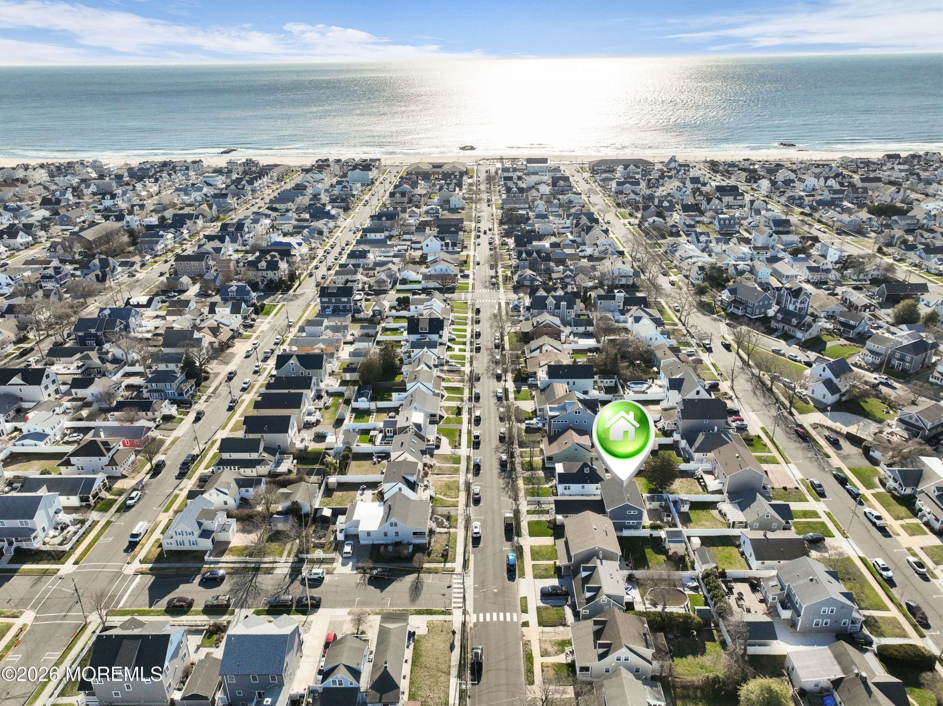 Jersey Shore living at its finest--just 3 blocks from the sand in the heart of Belmar! This custom 2-story home sits within a prime location & has been fully renovated in 2021. This move-in ready home boasts close proximity to Belmar Beach, Belmar restaurants as well as Lake Como & Shark River & features a sought-after first-floor primary suite w/ custom upgrade throughout. Step inside to an open-concept living space welcomed by soaring beamed ceilings, shiplaps-style walls, vinyl plank flooring & an electric fireplace flowing seamlessly into a beautifully updated kitchen w/ a large center island w/ bar seating, marble countertops, stainless steel appliances, coffee nook w/ wood countertop, large pantry & dining area. The first-floor primary suite offers a walk-in closet & a private bath w/ double sinks & a custom tiled stall shower. The main level also includes a dedicated laundry area w/ backyard access & 1/2 bath for guests. Upstairs, a 2021 custom addition provides two additional bedrooms, a full bath & a versatile loft--perfect for a home office or bonus space.Enjoy your own private backyard oasis featuring a paver patio, custom tiki bar, outdoor shower & shed--all within a fully fenced yard. Additional highlights include an extended paver driveway with a 220V EV charger, plus newer HVAC, water heater & roof (all approximately 5 years old). This home offers the true Jersey Shore lifestyle with the custom addition & prime location. This opportunity is rare! Do not miss your opportunity! Call today to schedule your tour!