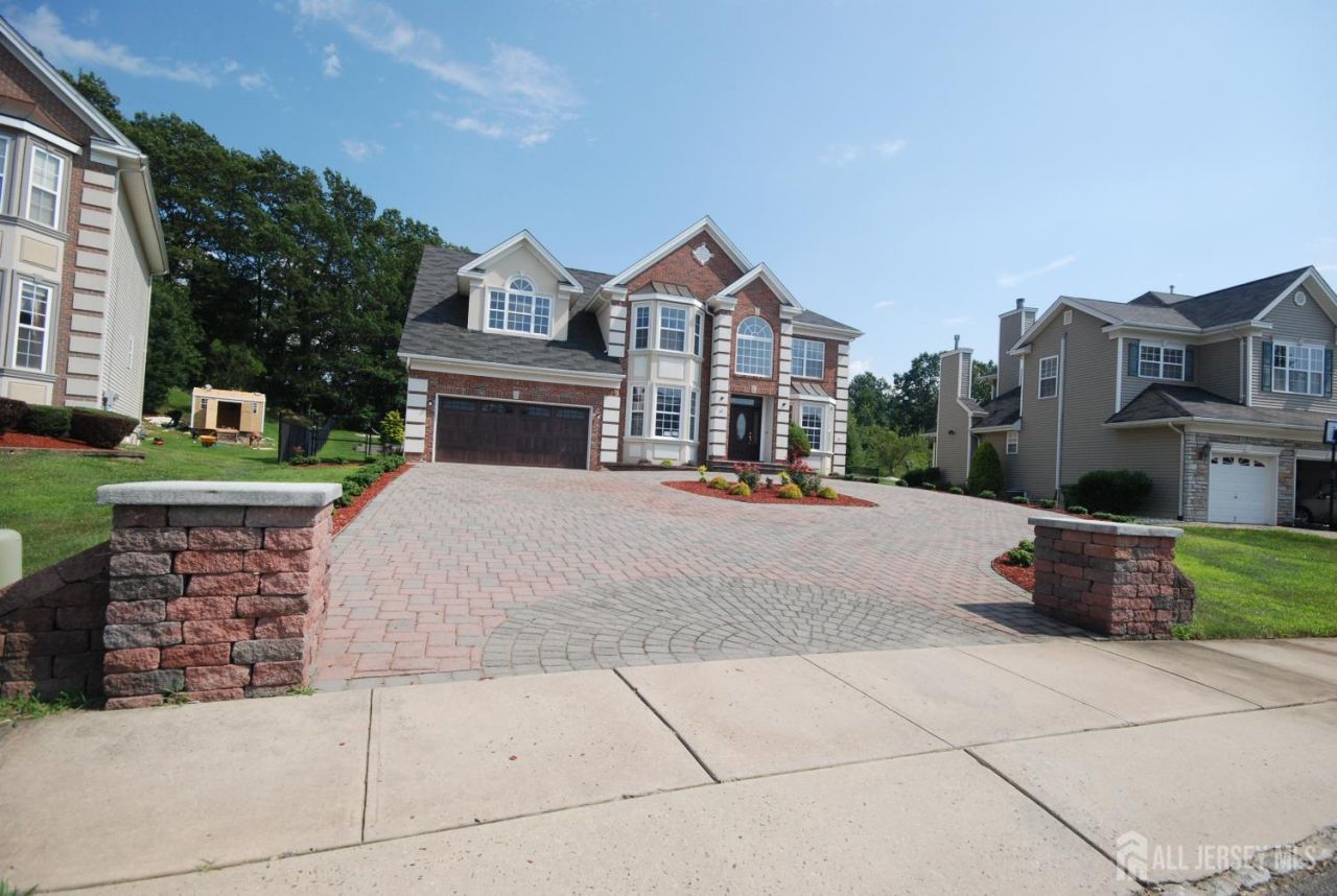Elegant Contemporary Colonial with High-End Finishes: Discover the perfect blend of luxury and convenience in this stunning 4-bedroom, 2.5-bathroom residence, featuring a dedicated home office and premium upgrades throughout. From the moment you pull into the expansive paved driveway flanked by decorative columns, the homes striking curb appealdefined by a classic brick and stucco facade and elegant bay windowssets a sophisticated tone. Grand Interior Features Stunning Entry: Step through the front door into a soaring two-story foyer with gleaming hardwood floors, creating an immediate sense of light and space. Formal Living & Dining: Host guests in the sun-drenched formal living and dining rooms, both featuring rich hardwood flooring and architectural bay windows that invite natural light. Gourmet Kitchen: The heart of the home is an expansive Eat-In Gourmet Kitchen, complete with upgraded cabinetry, durable tile flooring, and overhead skylights that create a bright, airy atmosphere for morning coffee. Great Room: Relax in the impressive two-story Family Room, anchored by a cozy gas fireplace and framed by beautiful hardwood floors. Private Retreats Palatial Master Suite: The primary bedroom serves as a true sanctuary, featuring a private sitting area, hardwood floors, and a massive Large closet. Spa-Like Master Bath: Indulge in the ensuite bath, boasting dual sinks with upgraded countertops and a deep Jacuzzi soaking tub. Additional Space: Three additional spacious bedrooms provide ample room for family or guests, while a private first-floor office offers the ideal environment for remote work. Outdoor Living & Storage Entertainers Backyard: Transition outside to a fully paved, low-maintenance backyardyour private oasis for summer BBQs and outdoor gatherings. Bonus Space: A full basement provides massive storage capacity, keeping your living areas clutter-free. Prime Location Perfectly situated for the modern commuter, this home offers lightning-fast access to major highways and is just moments away from NYC Bus Stops, making your trek into the city effortless.