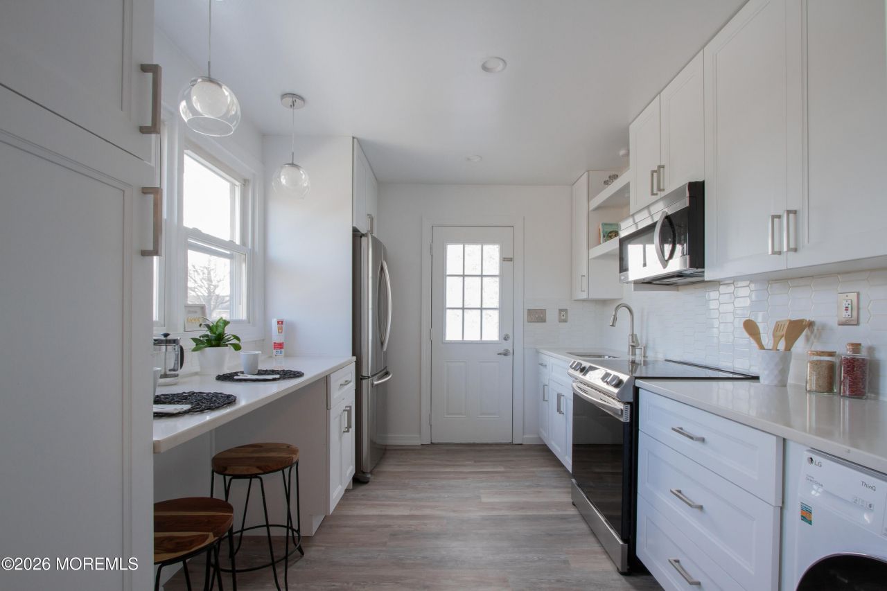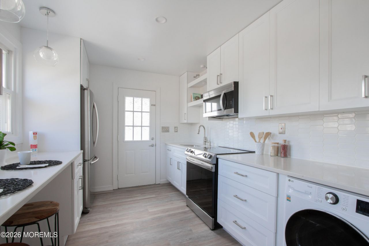 Beautiful, fully updated, 2 bedroom apartment less than one block to the beach! Available for immediate occupancy. Kitchen includes updated stainless steel appliances and a washer/dryer combo unit tucked under the kitchen counter. Fall in love with the white cabinets, granite countertops, and white tile backsplash. Kitchen has direct access to your private, fenced-in patio. Bathroom is fully updated as well. New flooring installed throughout in 2024. Ready for new tenants to unpack and enjoy! Private driveway for off street parking. Tenant responsible for electric, cable/internet, and winter snow removal. Applicants must complete background check, provide proof of income, and provide references.